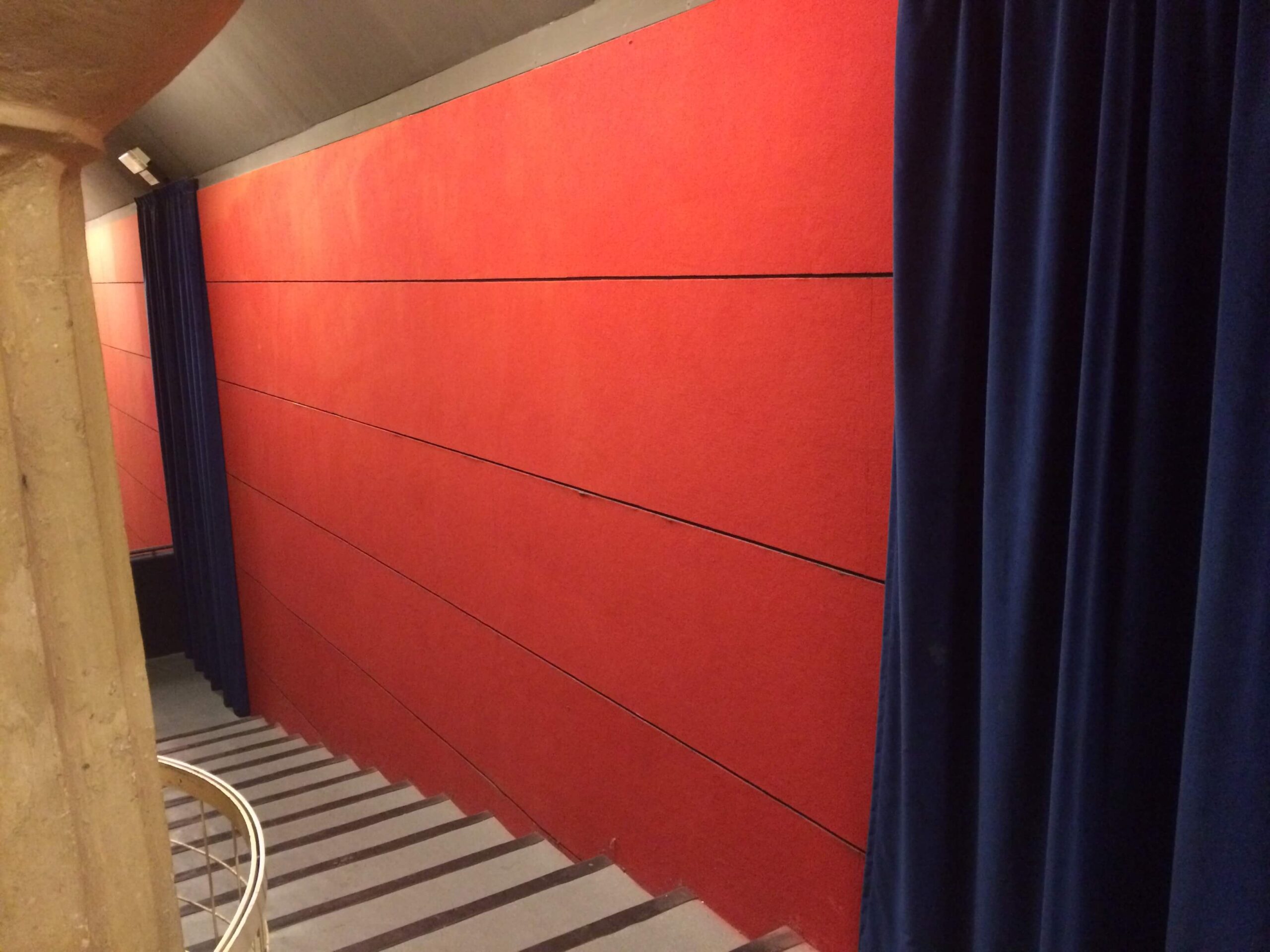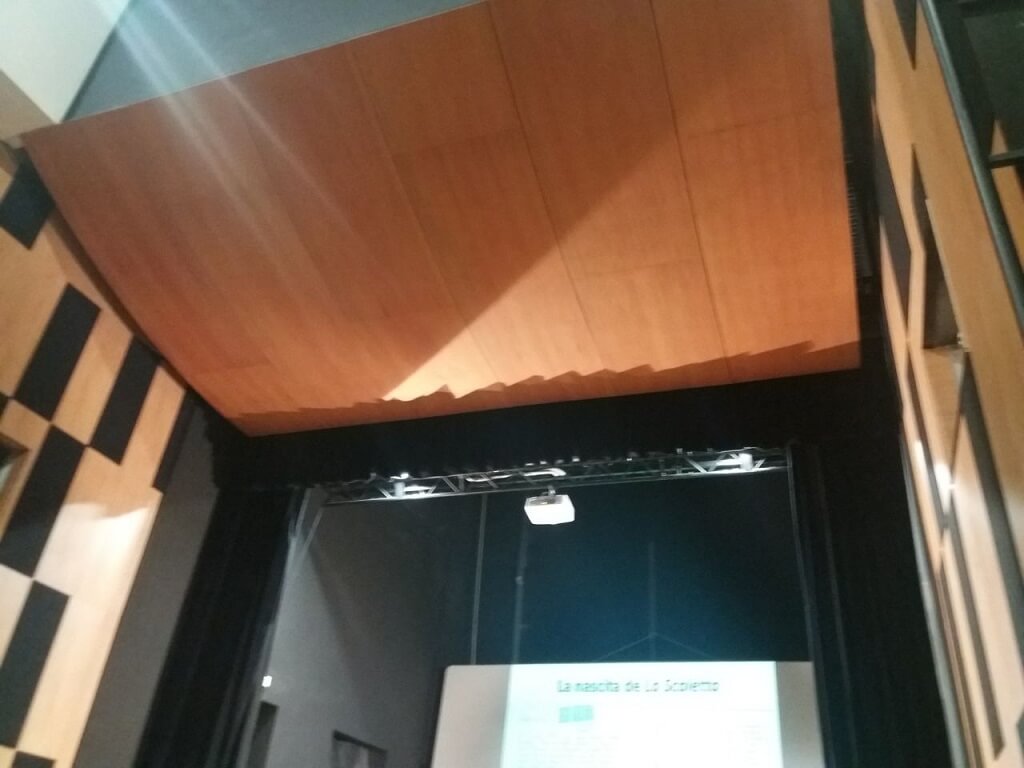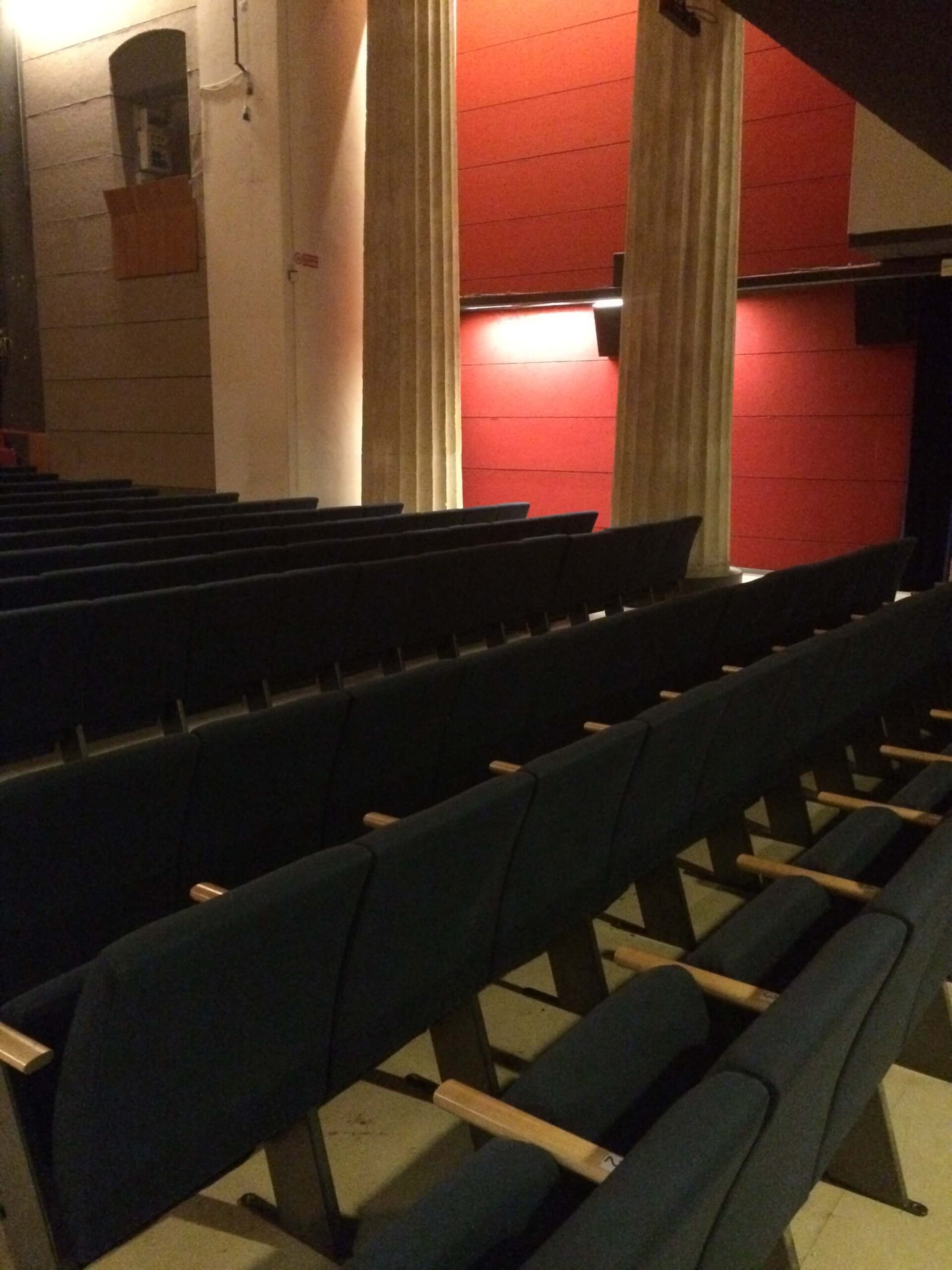 - è stata concepita la nuova parete di fondo della sala, in modo che avesse una prestazione al fonoisolamento tale da limitare il rumore antropico proveniente dal portico di ingresso o dalla piazza antistante.