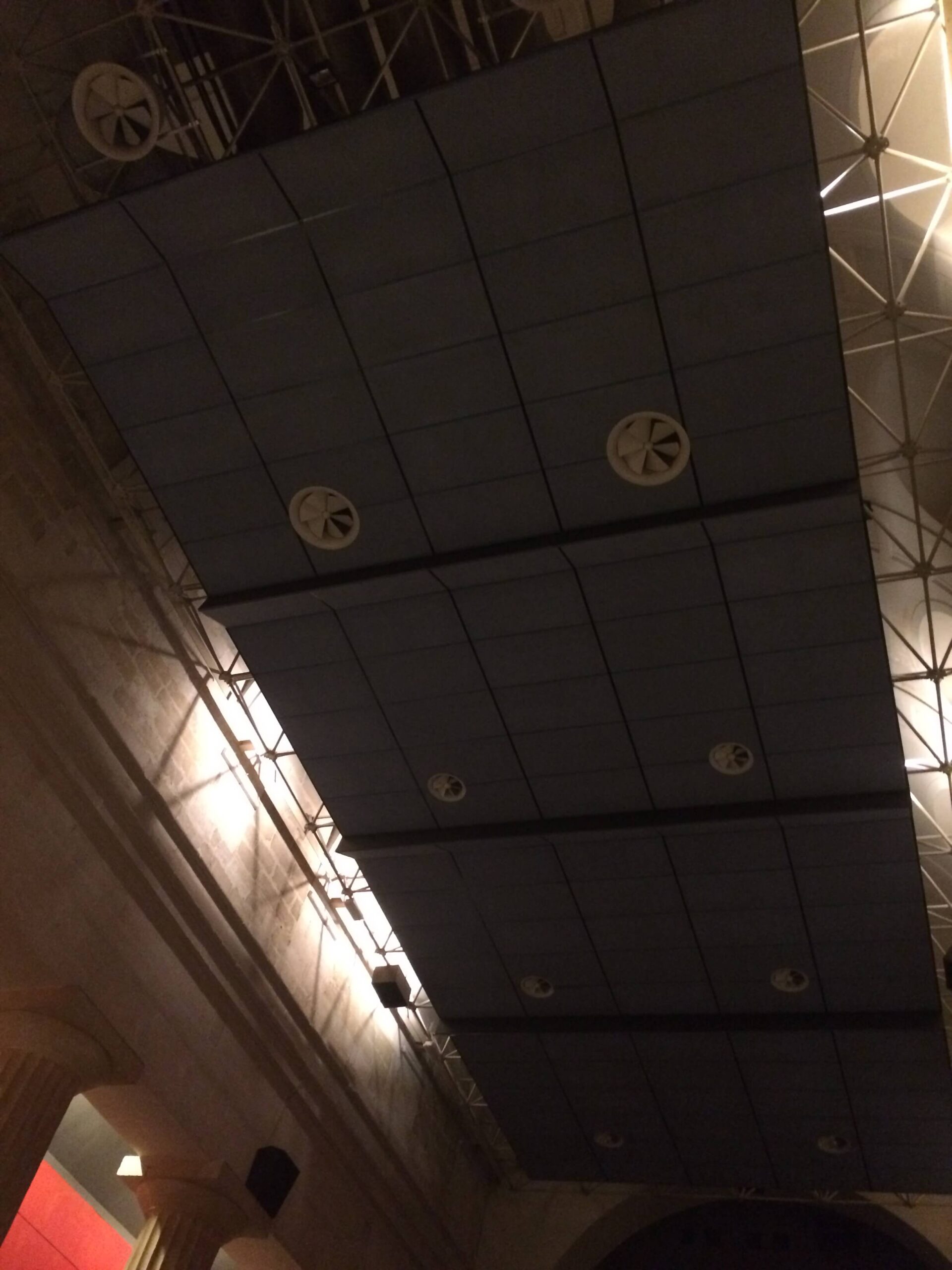 Il progetto di riqualificazione, pertanto, si era posto due obiettivi: ottimizzare la qualità acustica della sala in funzione della destinazione d’uso e ridurre il rumore di fondo all’interno dell’ambiente (dovuto essenzialmente al rumore intrusivo dall’esterno e quello dell’impianto di climatizzazione).
